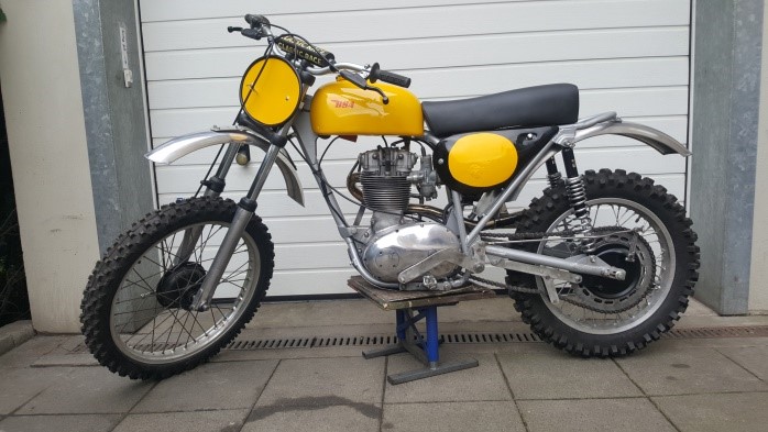 koop: Volledig origineel en ongerestaureerd!!! Persoonlijke moto van Frits Selling, invoerder van Greeves en veelvoudig kampioen met deze moto. Greeves Challenger MX2 van 1965. Dit is een 250cc 2tact cross moto. Dit model kwam uit in 1964 met een eigen gemaakte Greeves motor. Hiervoor gebruikte Greeves altijd een Villier blok. Het 1964 (MX1) model had een slechte versnellingsbak en zodoende werd deze aangepast in het 1965 model (MX2). Greeves was één van de eerste die 2 tacten ging gebruiken in de cross en zodoende waren zij de winnaars van vele crossen tussen 1959 en 1969. Bij vele wedstrijden waren de eerste 10 plaatsen bezet door Greeves. Door de combinatie van de grote kracht van de 2tact en het superlichte frame (uit 1 stuk aluminium) en het gebruik van polyester als tank en spatborden was dit een winnaar in vele wedstrijden. Het was zelfs zo dat deze 250cc ook meedeed in de 500cc en toch nog alles kon winnen.Moto is in perfect rijdende staat en direct inzetbaar voor wedstrijden. Check internet voor de rijke race geschiedenis van dit model.meer info kan je vinden op www.hd-classic.be Hans Devos Pandhoevestraat 79a 3128 Baal Belgium 0032(0)16-53.75.77 0032(0)477-888.184 |